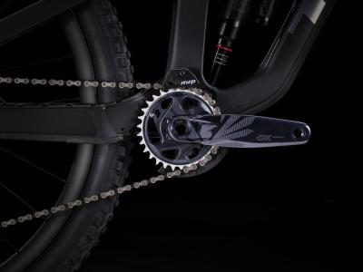 Einen Rahmen komplett aus OCLV Mountain Carbon mit 160 mm Federweg, einen RockShox Super Deluxe Select Plus RT-Dämpfer und eine RockShox ZEB Select+-Federgabel mit bulligen 38-mm-Standrohren. Außerdem kommt es mit einem komplett drahtlosen SRAM GX AXS 12fach-Antrieb und Bontragers Line Elite 30-Carbonlaufrädern samt Rapid Drive-Hinterradnabe mit 108 Zähnen für eine verzögerungsfreie Beschleunigung in den entscheidenden Momenten.