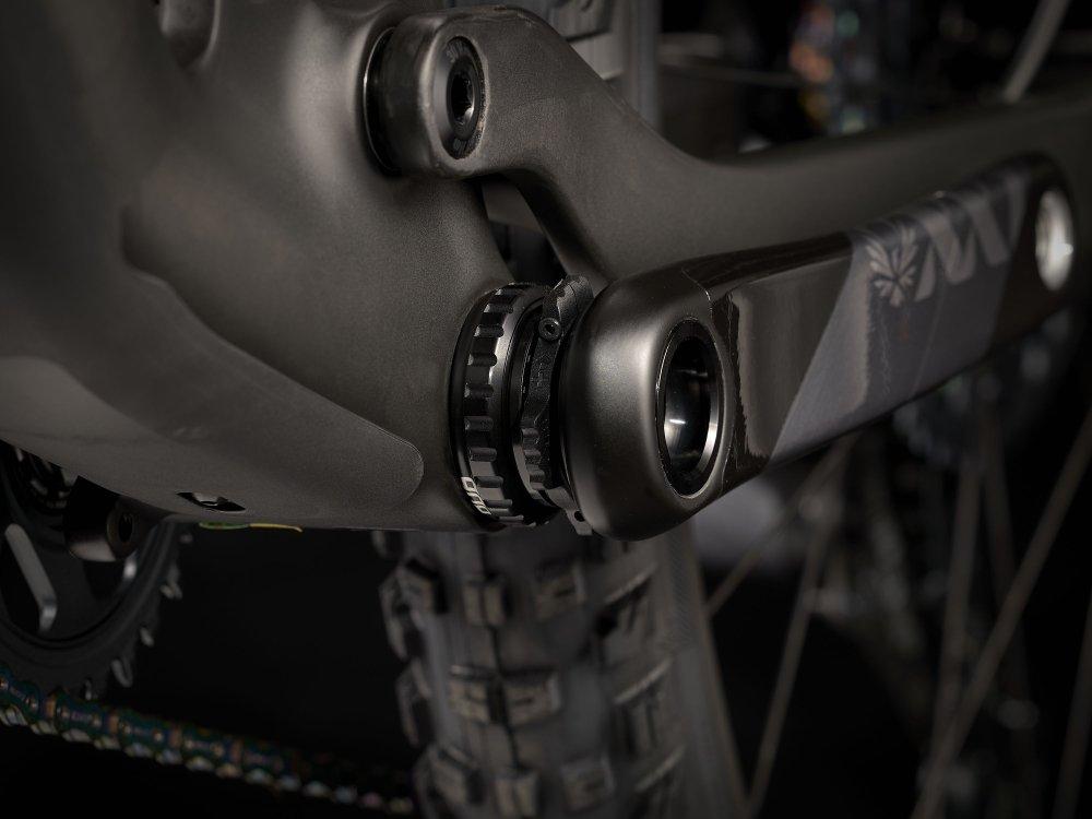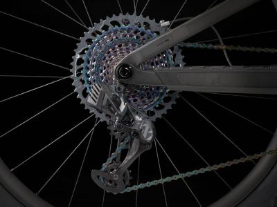 Einen Vollcarbonrahmen, eine extrem geschmeidig arbeitende RockShox SID Ultimate-Gabel mit 120 mm Federweg und Charger Race Day-Dämpfung mit vielen Anpassungsmöglichkeiten, einen RockShox Deluxe Ultimate RCT-Dämpfer mit 120 mm Federweg und einen komplett drahtlosen SRAM XX1 Eagle AXS-Antrieb. Dazu gibt es breite Bontrager Line Pro 30-Carbonlaufräder inklusive Rapid Drive-Nabe mit 108 Zähnen für einen verzögerungsfreien Kraftschluss, eine drahtlose RockShox Reverb AXS-Variosattelstütze und SRAM Level Ultimate-Scheibenbremsen mit Carbonbremshebeln.