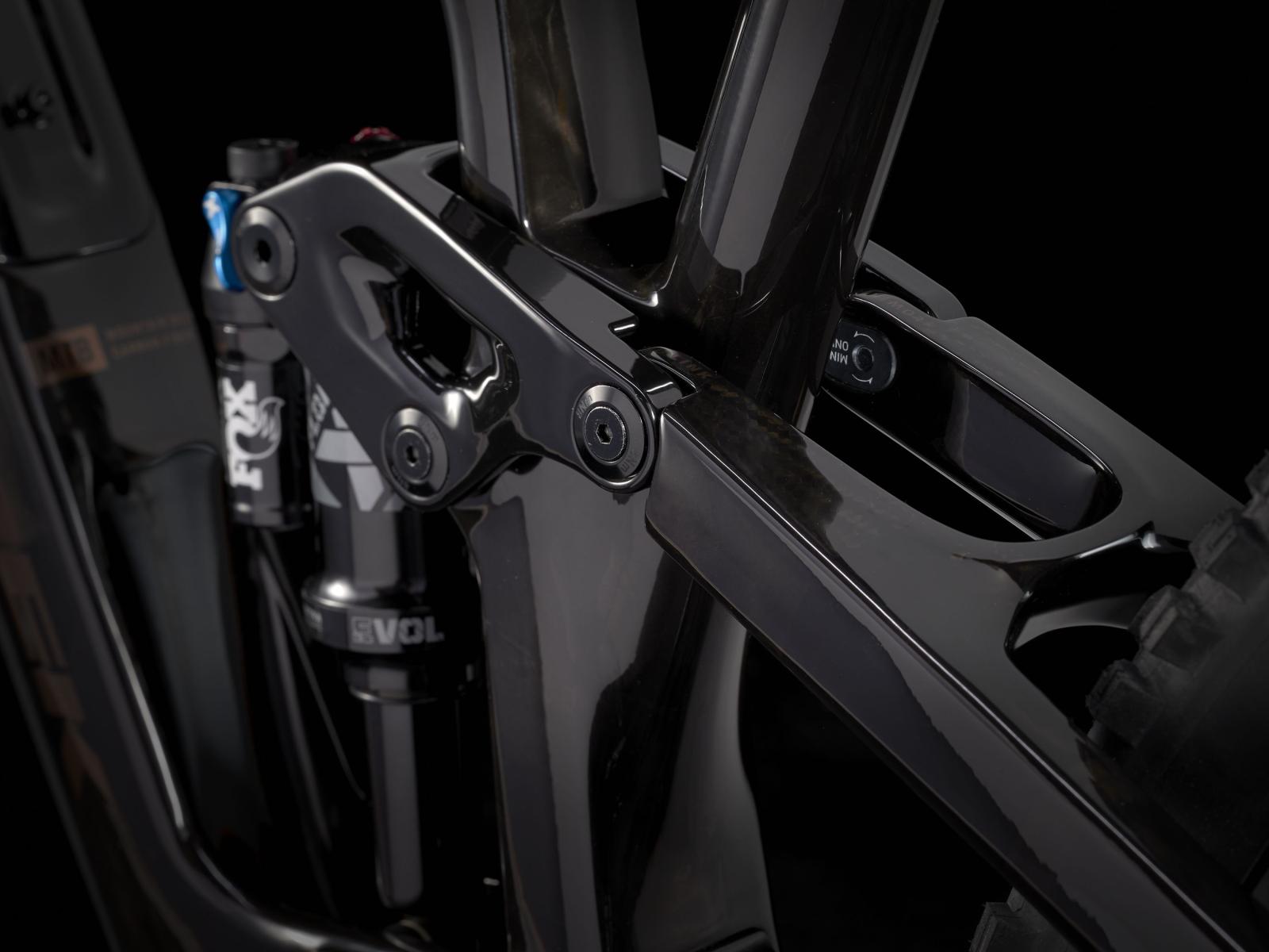Rahmen: OCLV Mountain Carbon, integriertes Staufach, verstellbarer Steuersatzwinkel, per Mino Link abstimmbare Geometrie, einstellbare Progression, geführte interne Zugverlegung, Magnesiumumlenkhebel, 34,9 mm Sitzrohrdurchmesser, ISCG 05, 55 mm Kettenlinie, BSA 73, Unterrohrschutz, Shuttle-Guard, ABP