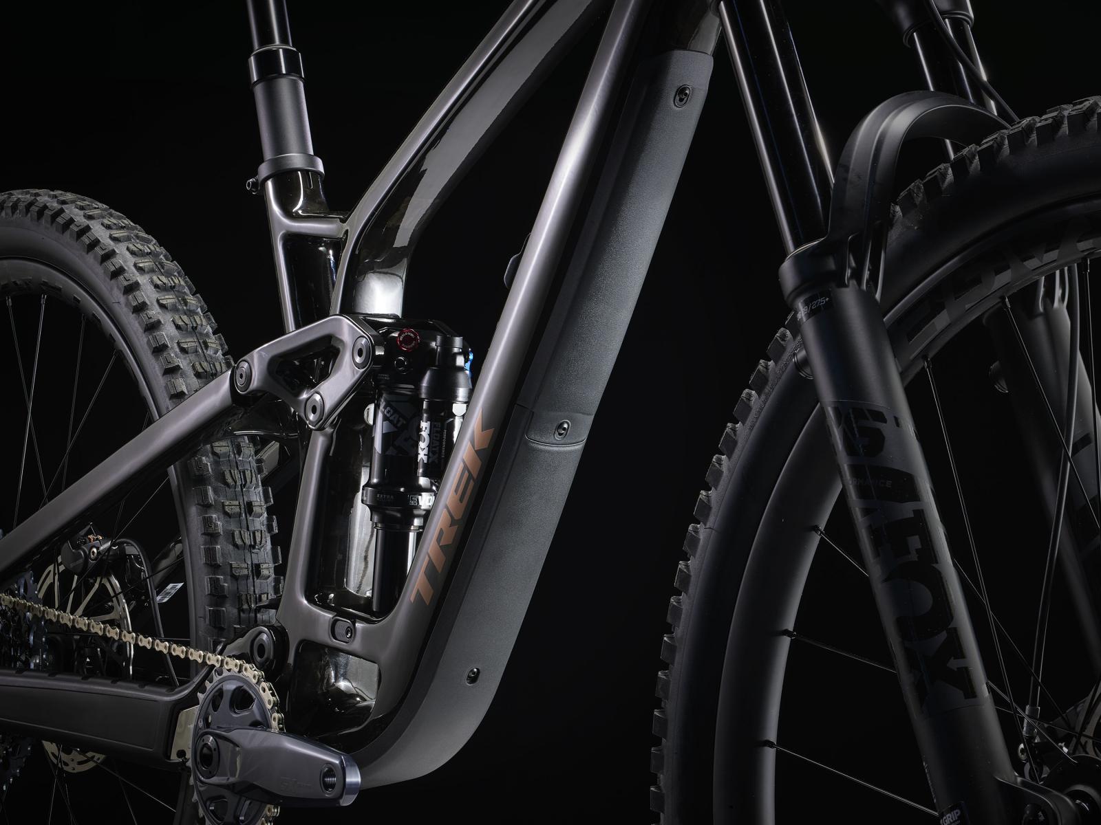 Das Fuel EX 9.8 ist ein couragiertes Trailbike mit einem leichten und steifen Carbonrahmen, der jede Linie mit jeder Menge Laufruhe meistert. Das Bike ist vollgepackt mit neuesten Technologien: Der drahtlose, anpassbare SRAM GX AXS-Antrieb sieht extrem clean aus, mit dem Fahrwerk mit 150 mm vorderem und 140 mm hinterem Federweg behältst du auch auf den wildesten Trails stets die Oberhand, und die Carbonlaufräder von Bontrager garantieren einen besonders schnellen Kraftschluss.