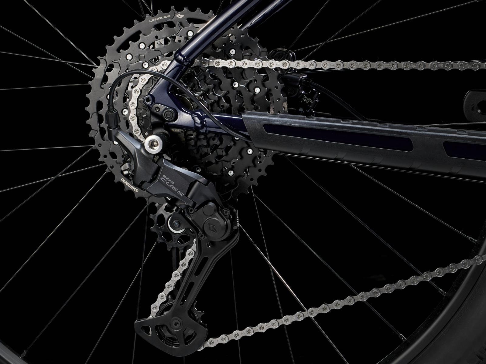 Inspiriert von der Nachfrage von Fahrer:innen nach einem verlässlichen, langlebigen Performance-Antrieb bietet Shimano CUES ein neues Maß an Vielseitigkeit und Belastbarkeit für sowohl E-Bikes als auch nichtunterstützte Fahrräder. CUES kommt mit Shimanos neuer LINKGLIDE-Antriebstechnologie, welche die Lebensdauer von Verschleißteilen wie Kette, Kassette und Kettenblätter deutlich verlängert.
