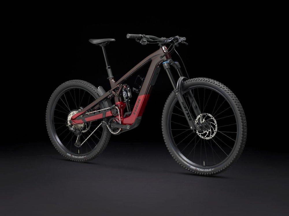Einen Rahmen aus OCLV Mountain Carbon mit hohem Hinterbaudrehpunkt sowie einen leisen, aber mächtigen TQ HPR50 Motor mit 50 Nm Drehmoment und 250 W Leistung samt 580-Wh-Akku. Für die 170 mm vorderen und hinteren Federweg sorgt eine FOX Rhythm 38 Gabel mit Float EVOL Luftfeder und GRIP Dämpfung und ein FOX Performance Float X Dämpfer. Steife Bontrager Line Comp 30 Tubeless-Ready-Laufräder mit Mullet-Setup (29" vorn, 27,5" hinten), eine Bontrager Line Variostütze und ein Shimano SLX/XT Antrieb runden die Ausstattung ab.