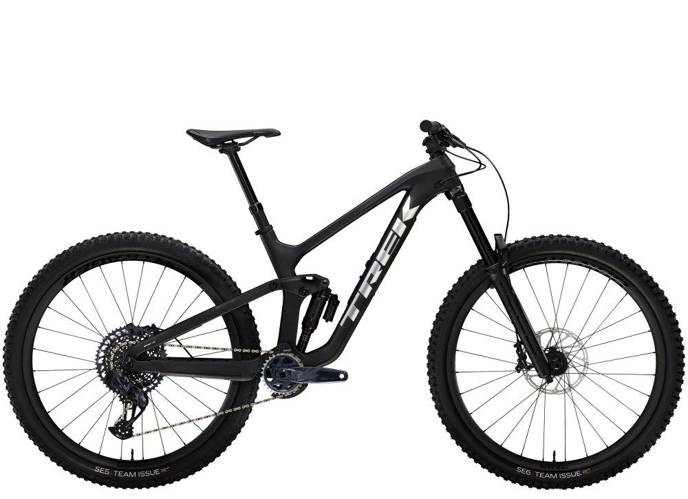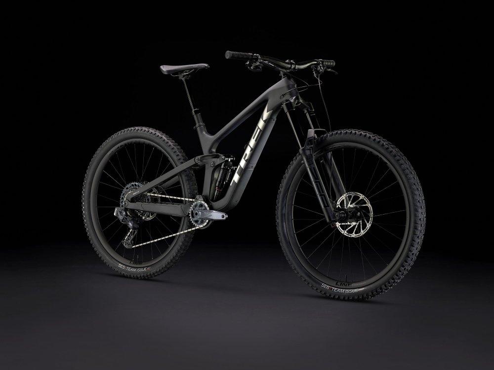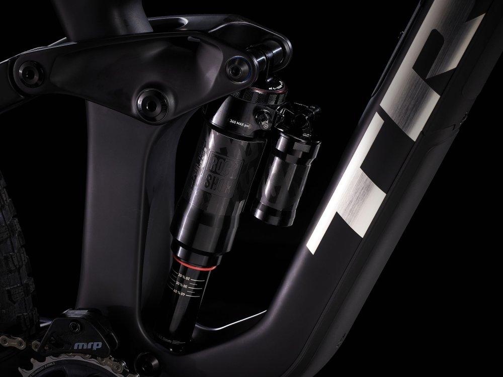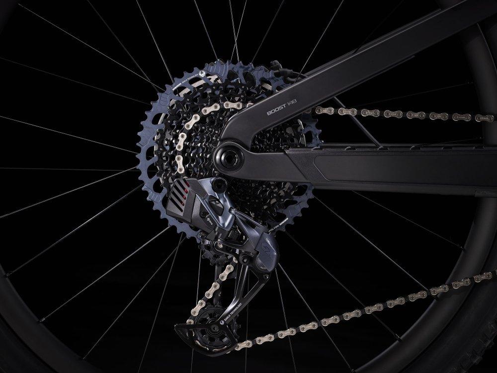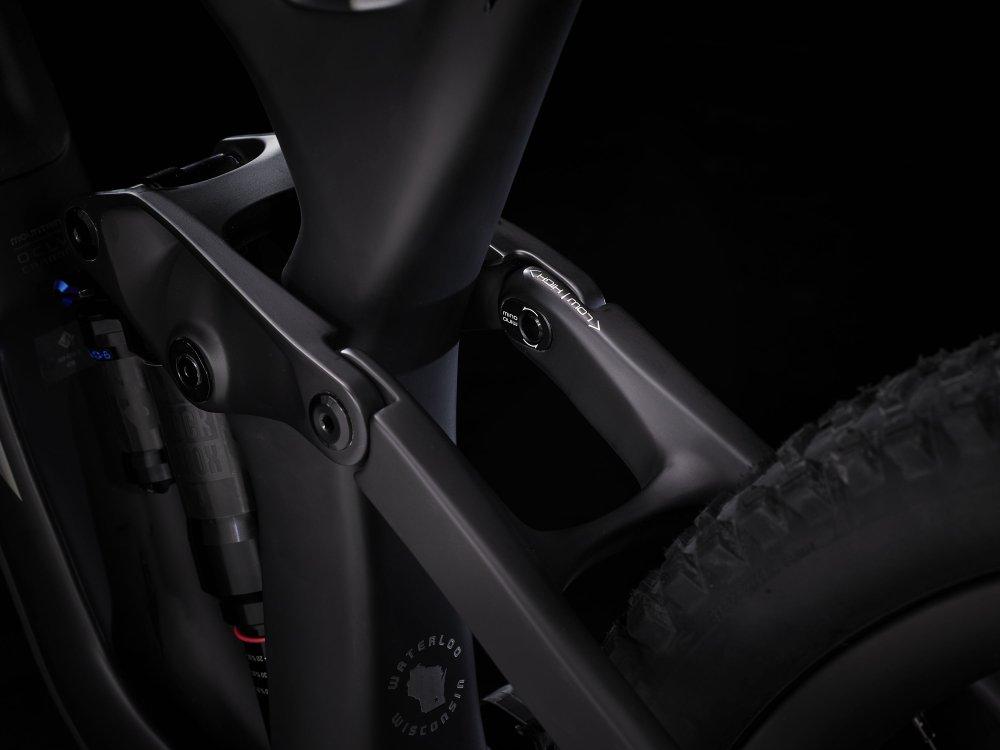 Einen Rahmen komplett aus OCLV Mountain Carbon mit 160 mm Federweg, einen RockShox Super Deluxe Select Plus RT-Dämpfer und eine RockShox ZEB Select+-Federgabel mit bulligen 38-mm-Standrohren. Außerdem kommt es mit einem komplett drahtlosen SRAM GX AXS 12fach-Antrieb und Bontragers Line Elite 30-Carbonlaufrädern samt Rapid Drive-Hinterradnabe mit 108 Zähnen für eine verzögerungsfreie Beschleunigung in den entscheidenden Momenten.