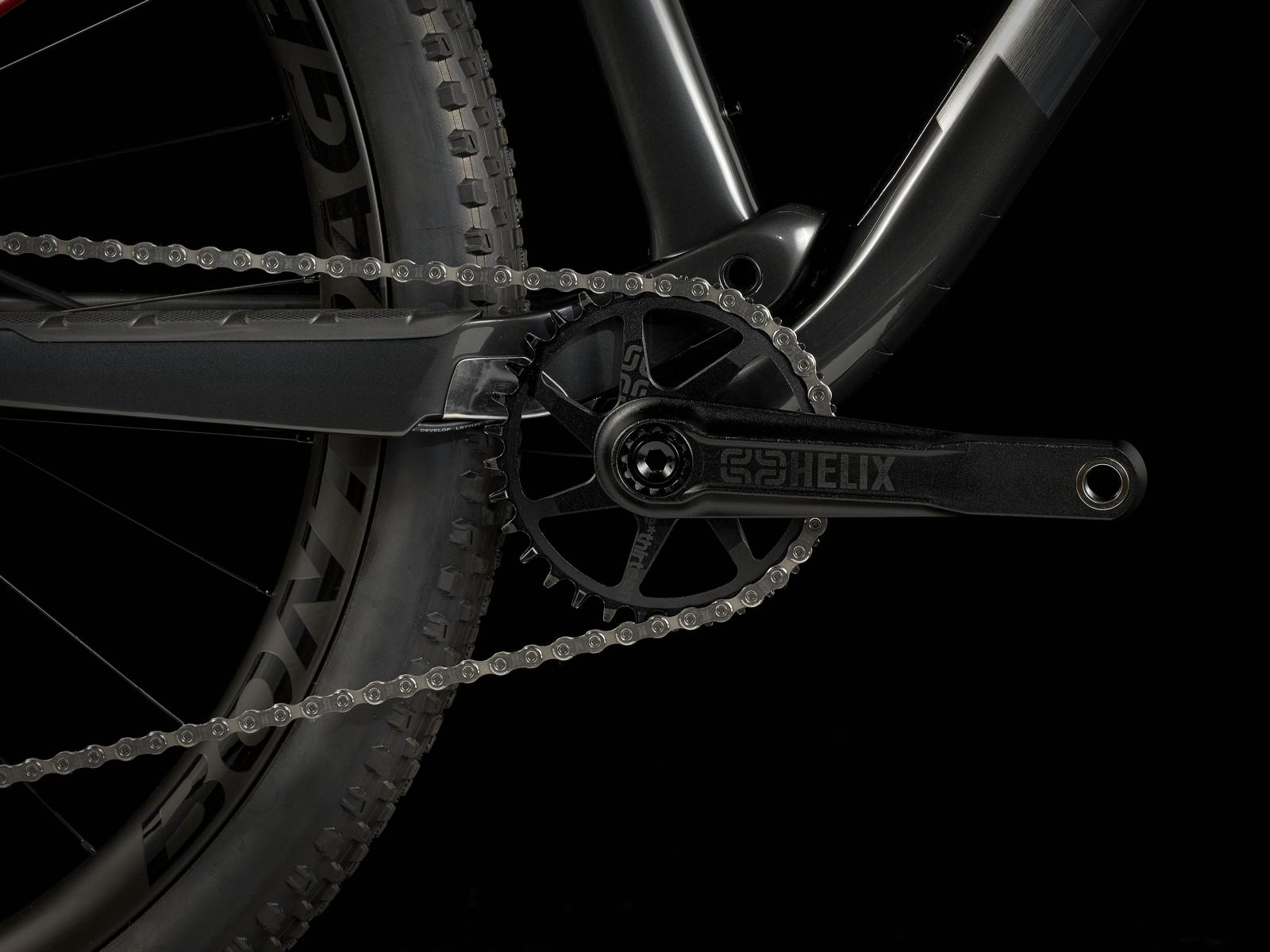 Treks MTB-spezifisches Carbon ist dafür ausgelegt, den extremen Anforderungen von Offroad-Rennen standzuhalten. Mithilfe fortschrittlicher Analysen sind unsere Designer in der Lage, einen Rahmen mit der besten Mischung aus leichtem Gewicht und hoher Agilität sowie mit ausreichender Nachgiebigkeit in den Sitzstreben zu entwickeln, um eine Hinterradfederung überflüssig zu machen.