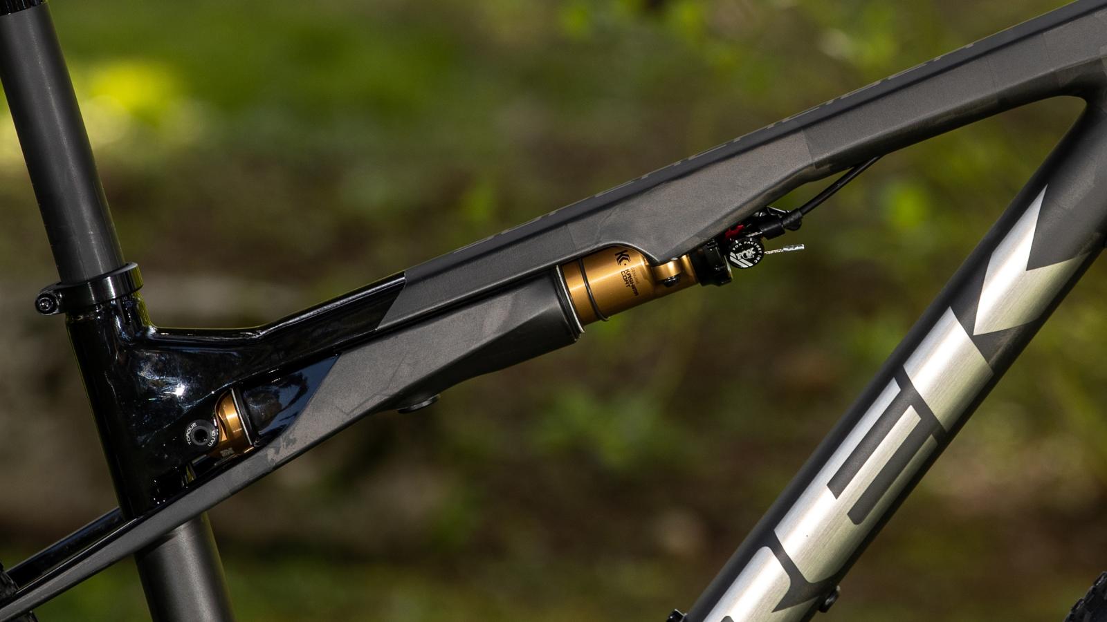 - Gelenklose Sitzstreben sparen Gewicht und tragen mit ihrer Flexibilität dazu bei, Unebenheiten auf dem Trail zu schlucken.