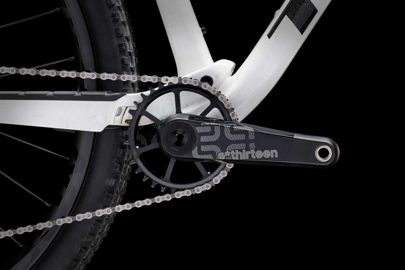 Kurbelsatz: e*thirteen TRS Race Carbon, 30 mm Achsdurchmesser, Aluminiumkettenblatt (34 Z.), 52 mm Kettenlinie, 170 mm Kurbelarmlänge